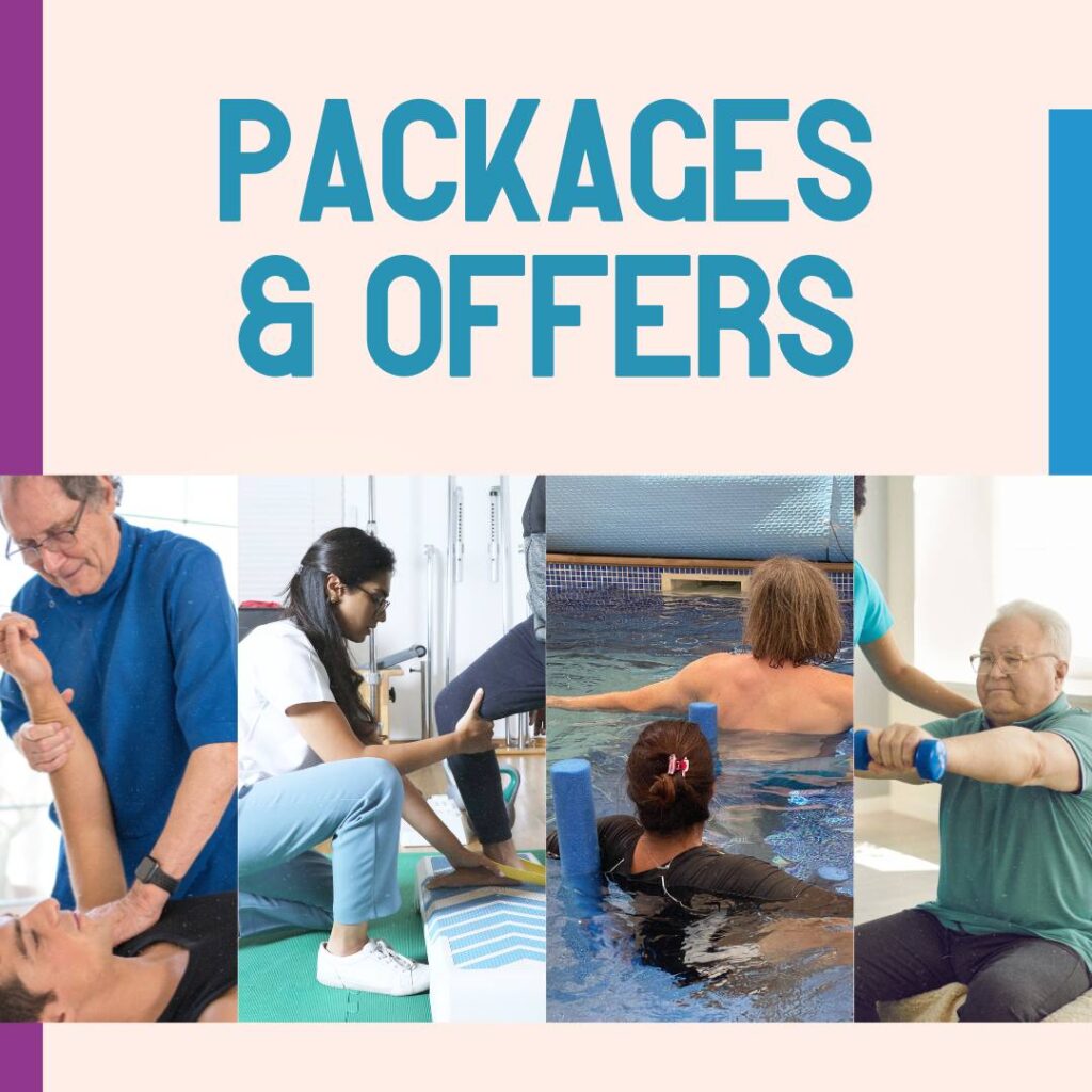 Take advantage of our multiple session package for discounted prices. Services include Osteopathy, Physiotherapy, Hydrotherapy, and Senior Care.